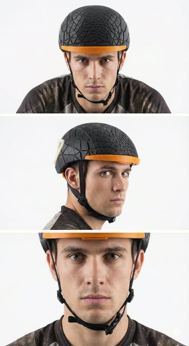 🛡️EXOESQUELETO DE FIBRA DE CARBONO: La compleja estructura externa de diseño celular, visible en estas imágenes del prototipo, es más que estética. Está diseñada para colapsar estratégicamente solo en el punto de impacto, neutralizando y redirigiendo la fuerza del golpe lejos de tu cabeza. Su diseño geométrico es una declaración de ingeniería de impacto inteligente.
